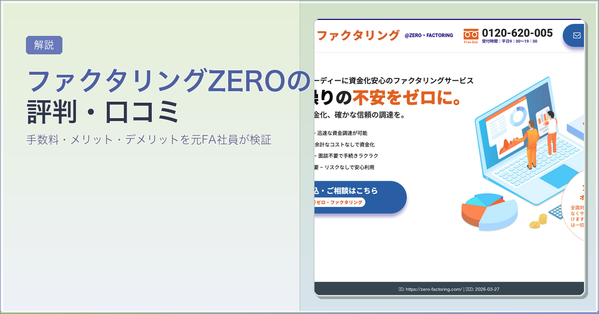 この記事では、ファクタリングZEROの公式情報・口コミサイトの評判・運営会社の実態を整理し、申込前に知っておくべきポイントをまとめます。