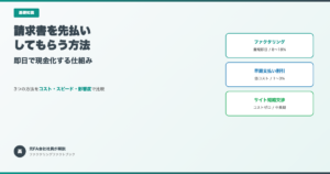 では「今月の支払いに間に合わせたい」という場面で使える返済不要の手段はあるのでしょうか。売掛金を持っているなら、答えはファクタリングです。