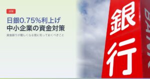 まず検討すべきは取引銀行への融資増額です。日銀の政策金利は2026年3月時点で0.75%に据え置かれています。野村證券のメインシナリオ(2026年1月時点)では、年内2回の利上げで年末に1.25%に到達するとの見通しです。変動金利の借入はコスト増のリスクがあり、審査にも1〜2週間かかります。急ぎの資金需要には対応しにくいのが実情です。
