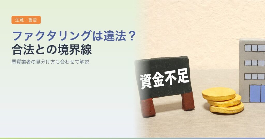 ファクタリングは原則合法ですが、給与ファクタリングや登録なし業者は違法です。元FA社員が法的根拠と悪質業者の見分け方を解説します。